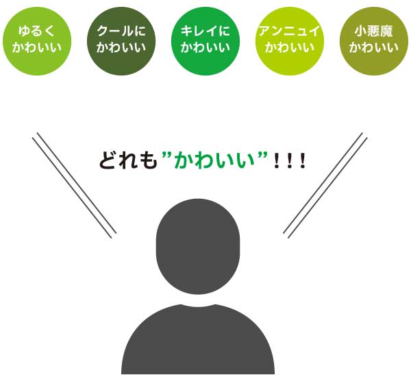このように、ビンドゥンドゥンや息子が欲しがるスキンの”誇らしさ”であったり、痴漢抑止バッジなどの”安心”であったりなど、”かわいい”とは全く別の感情で見せることができれば、他から一歩抜きん出て目立つようになるということなんです。